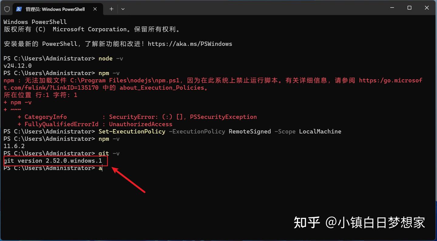Set-ExecutionPolicy -ExecutionPolicy RemoteSigned -Scope LocalMachine再次测试,正确返回版本号