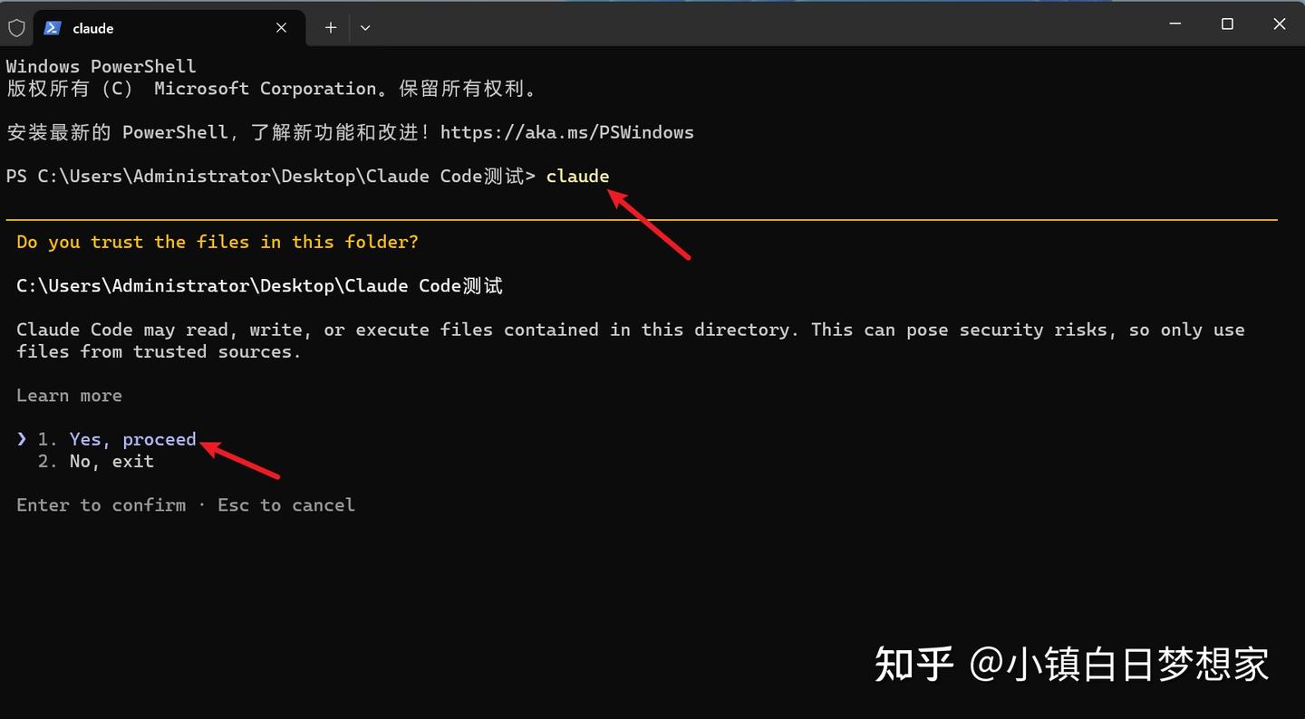 启动后选择信任 Claude Code 访问文件夹里的文件,如下: