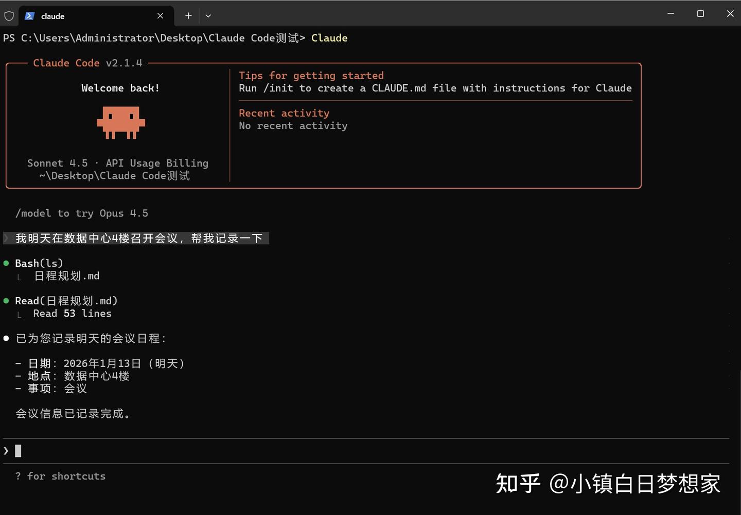 输入后 Claude Code 就会自动新建一个日程规划模版